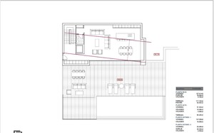 Deze villa, met blootgestelde betonnen afwerkingen met panelen, heeft 4 verdiepingen die zijn verbonden met een lift en een interne trap. De begane grond heeft een groot open gebied met een levende Kitchen en een toilet. De keuken is volledig uitgerust en heeft een kookeiland. Schuifdeuren op plafondhoogte geven directe toegang tot een ruim terras en een zwembad. De bovenste verdieping heeft twee slaapkamers met en-suite badkamers en een terras.