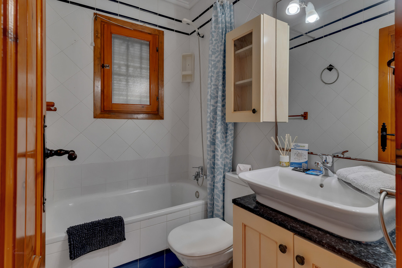 De woning is volledig gelijkvloers ingedeeld, wat comfort en toegankelijkheid garandeert. Ze beschikt over drie ruime slaapkamers, twee complete badkamers, lichte woon- en eetkamers en een privégarage. Het vlakke perceel biedt een onderhoudsvriendelijke mediterrane tuin en een privézwembad, perfect om te genieten van het zonnige klimaat van de Costa Blanca.